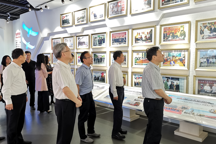 江苏suncitygroup太阳集团,太阳集团集团股份有限公司董事长王家安带领调研组一行,参观了生产车间和展厅,向调研组介绍企业国内外发展定位及在“一带一路”沿线国家落地项目的概况,向调研组介绍企业现阶段发展状况、海外项目运行情况及企业未来发展愿景。