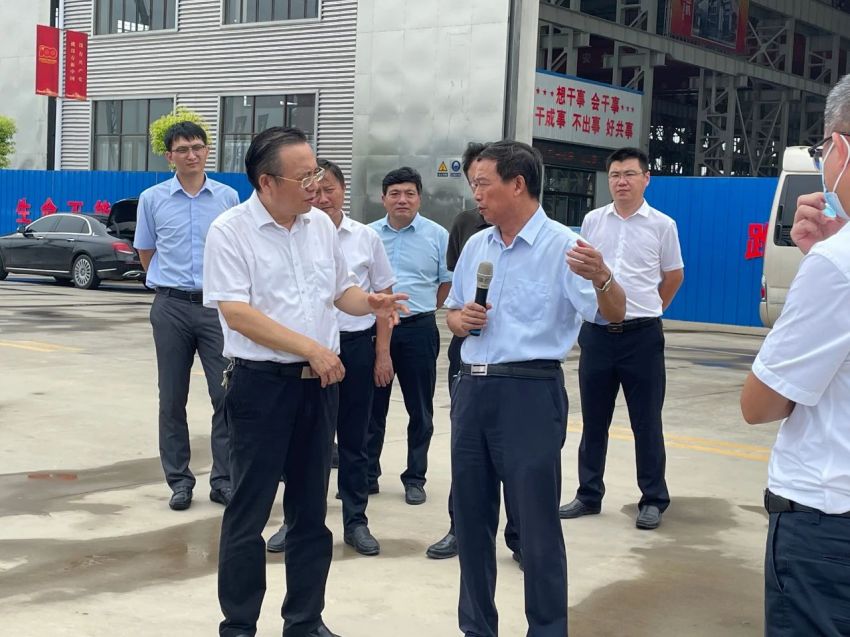 江苏suncitygroup太阳集团,太阳集团集团股份有限公司资源综合利用成套装备生产项目现场,黄卫成听取了公司董事长王家安关于资源综合利用成套装备生产项目的投资规模、用地面积、建筑面积、建设进度等情况的介绍。此外,他还就项目建设的手续审批、大件产品的运输、疫情对公司产品出口造成的影响等问题与王家安进行交流。