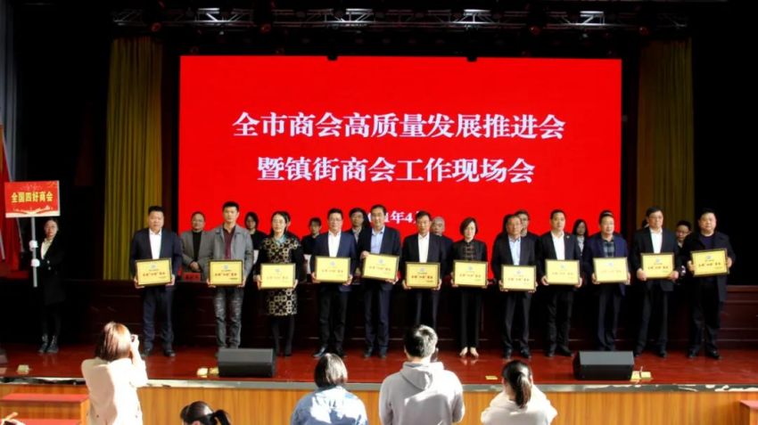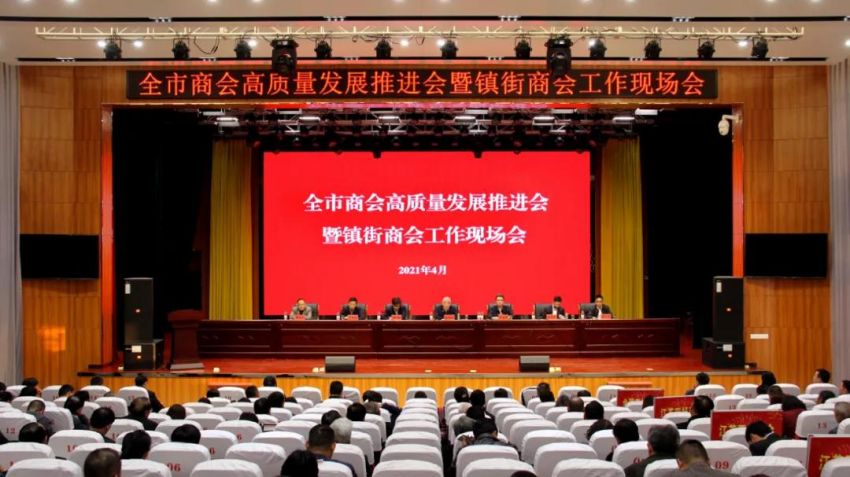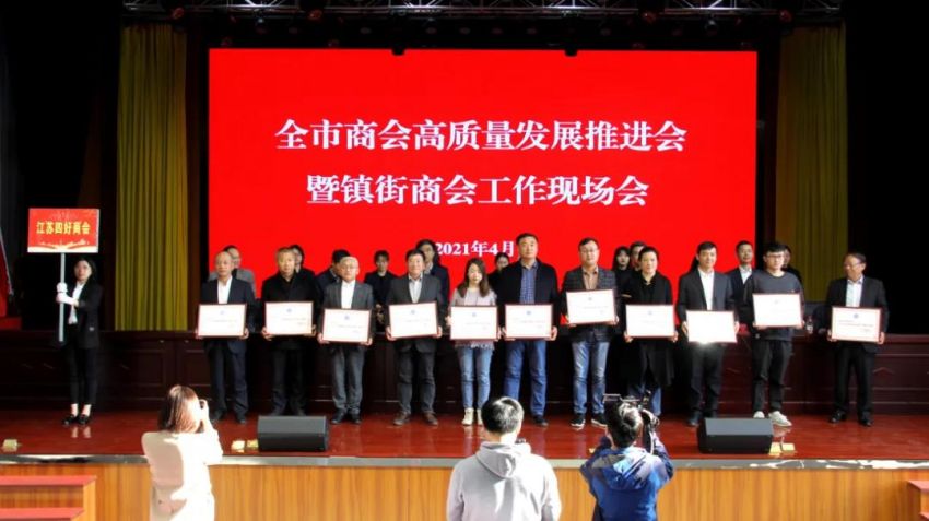 为学习贯彻中央、省商会工作会议精神,加快推进全市商会基层组织建设,推进商会组织高质量发展。4月19日下午,南通市工商联(总商会)在我镇隆重召开“全市商会高质量发展推进会暨镇街商会工作现场会”。南通市政府副市长、一级巡视员赵闻斌,江苏省工商联党组成员、副主席李晓林,南通市委统战部副部长、市工商联党组书记王虎,海安市委常委、组织部长、统战部长张明星,南通市工商联党组成员、副主席罗加宏,海安市政协副主席、工商联主席、总商会会长蔡祝平,大公镇党委书记金山存,党委副书记、镇长鲁竞等参加活动。出席会议的还有省工商联、市民政局相关处室领导,各县(市)区委统战部分管副部长、工商联主要负责人及分管领导,全市各镇街(园区)统战委员,商会会长代表,受表彰的全国抗疫先进典型,全国、省、市四好商会,荣获全市商会十大工作品牌的商会,商会十佳会长,十佳秘书长,部分市直商(协)会主要负责人,以及市工商联相关部室人员共计250余人。