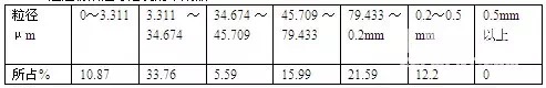 我们对广东JYSN水泥厂(上图2联合粉磨系统)的VPM出料以及经V选选粉后旋风筒收集的与收尘器收集的进球磨机的2种物料进行取样,做颗粒级配分析,结果如下: