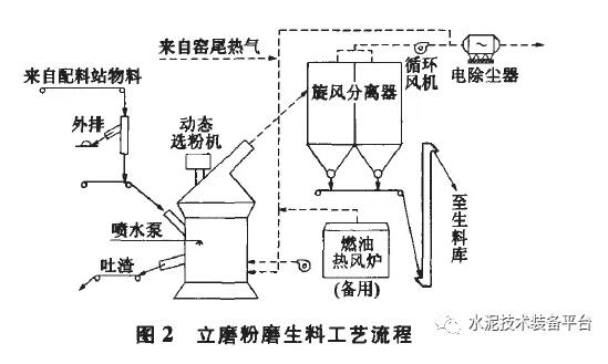 立磨终粉磨生料工艺流程见图2.