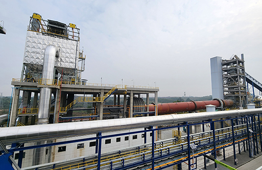 转化焙烧:锂辉石精矿从精矿库人工送至斗式提升机提升至精矿仓,再经圆盘给料机和螺旋给料机加入碳酸锂回转窑窑尾,利用窑尾预热段高温气体干燥精矿,精矿在煅烧段约1200℃左右的温度下进行晶型转化焙烧,由α型(单斜晶系,密度3150kg/m3)转化为β型锂辉石(四方晶系,密度2400kg/m3,即焙料),转化率约98%。